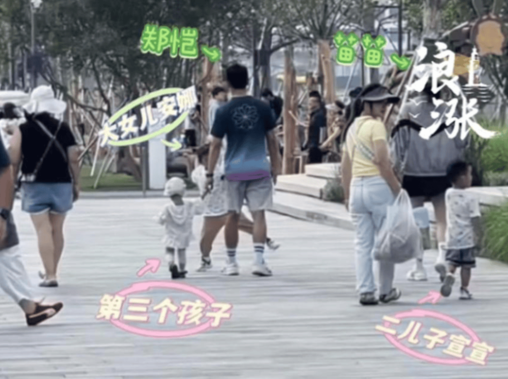 这次出行带着大女儿安娜和儿子宣宣,第三个孩子没有领出来,应该是不想平添是非了,郑恺左右手各牵一个看着都好累了,而苗苗拿着摄像机不停的拍拍拍,毕竟没工作的时候,苗苗大多数都是在做自媒体,记录自己的生活。